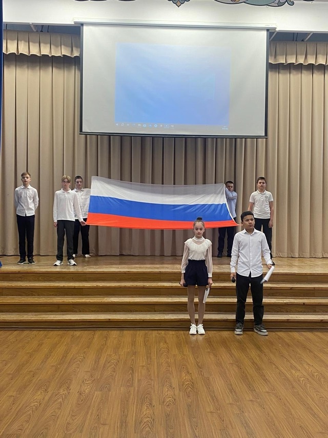 Во всех учебных корпусах под звуки гимна группа знаменосцев поднимает Государственный флаг нашей страны.