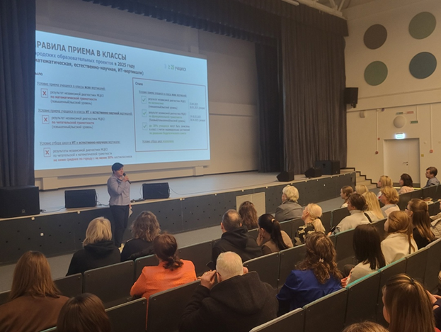 Вместе с администрацией школы и педагогами родители обсудили ключевые аспекты поступления в классы проектов "Математическая вертикаль", "ИТ вертикаль" и получили исчерпывающую информацию о программах, а также возможность задать вопросы и обсудить все интересующие их моменты.
