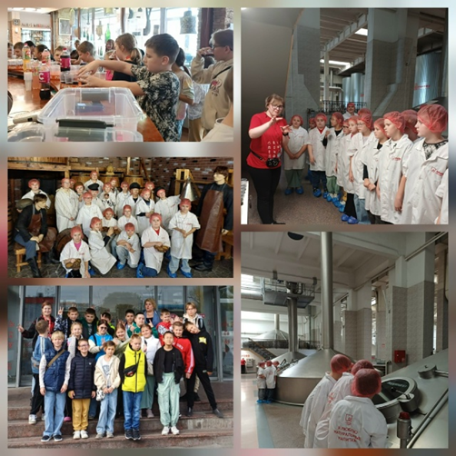Ребята 4Е класса посетили обзорную экскурсию на заводе по производству напитков. Они увидели производственную ленту с продукцией и старинные приспособления для изготовления кваса и многое другое.