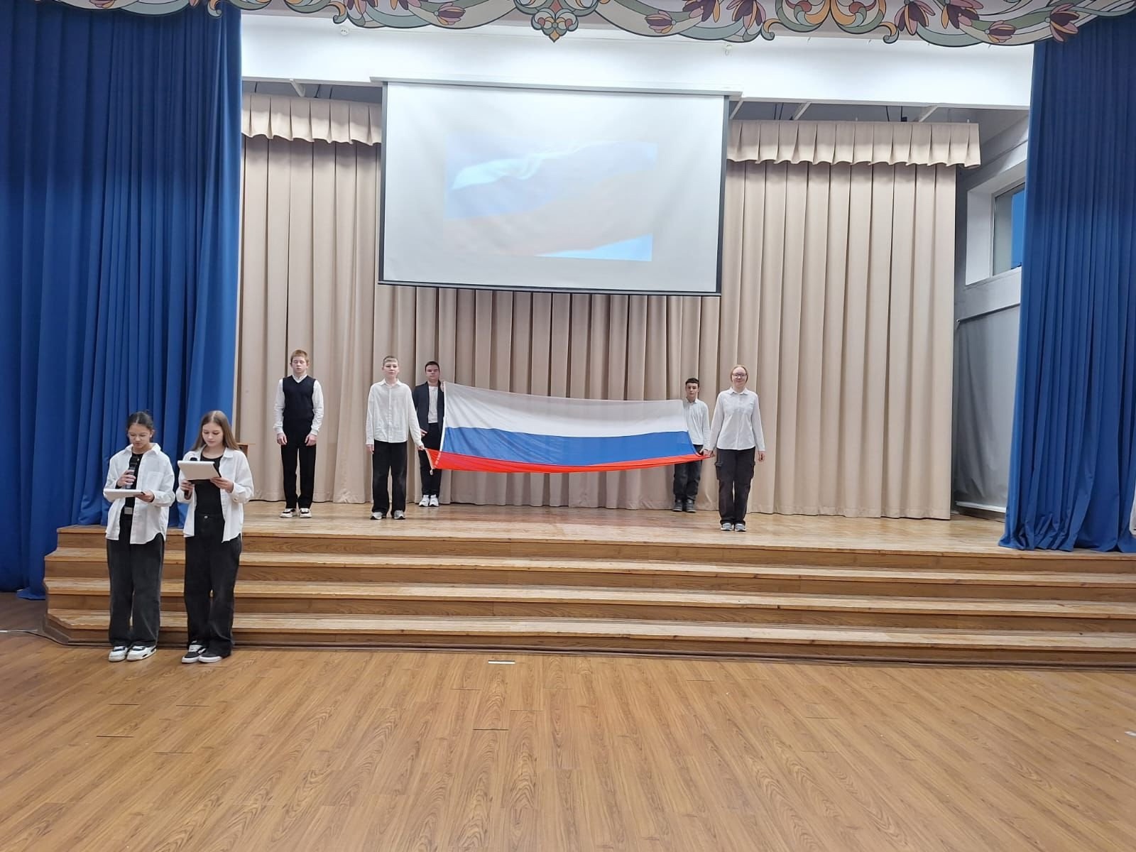 С торжественного поднятия флага Российской Федерации по традиции начался первый учебный день в наступившем 2025 году.